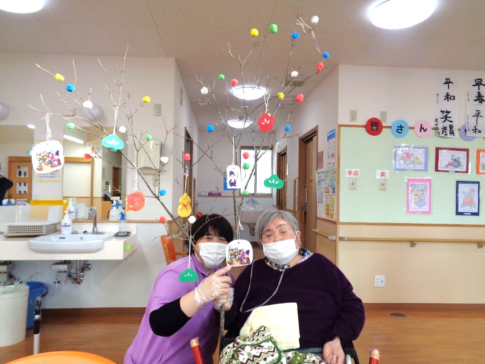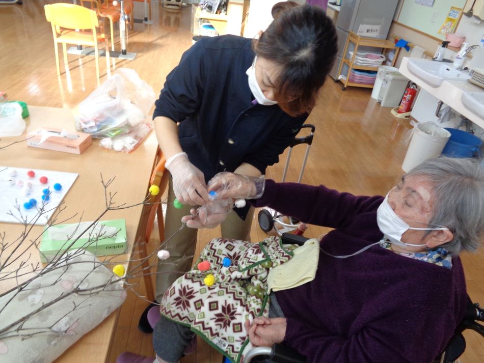 1月15日に利用者様と職員で「団子さし」を行い、色鮮やかな飾り作りを楽しまれ、無病息災を祈願されました!
