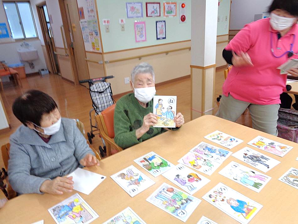1月19日~24日、利用者様と一緒に「かるた大会」を行いました。読み札にとても真剣に耳を傾けながら参加され、笑顔と笑い声があふれる楽しい時間となりました。皆様とても意欲的に参加され、交流の深まるひとときとなりました。
