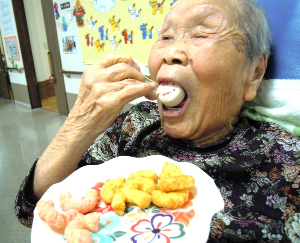 おやつは、入居者様皆様でテーブルを囲んでキャラメルコーンや上菓子を堪能されました。
