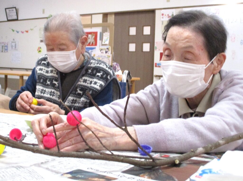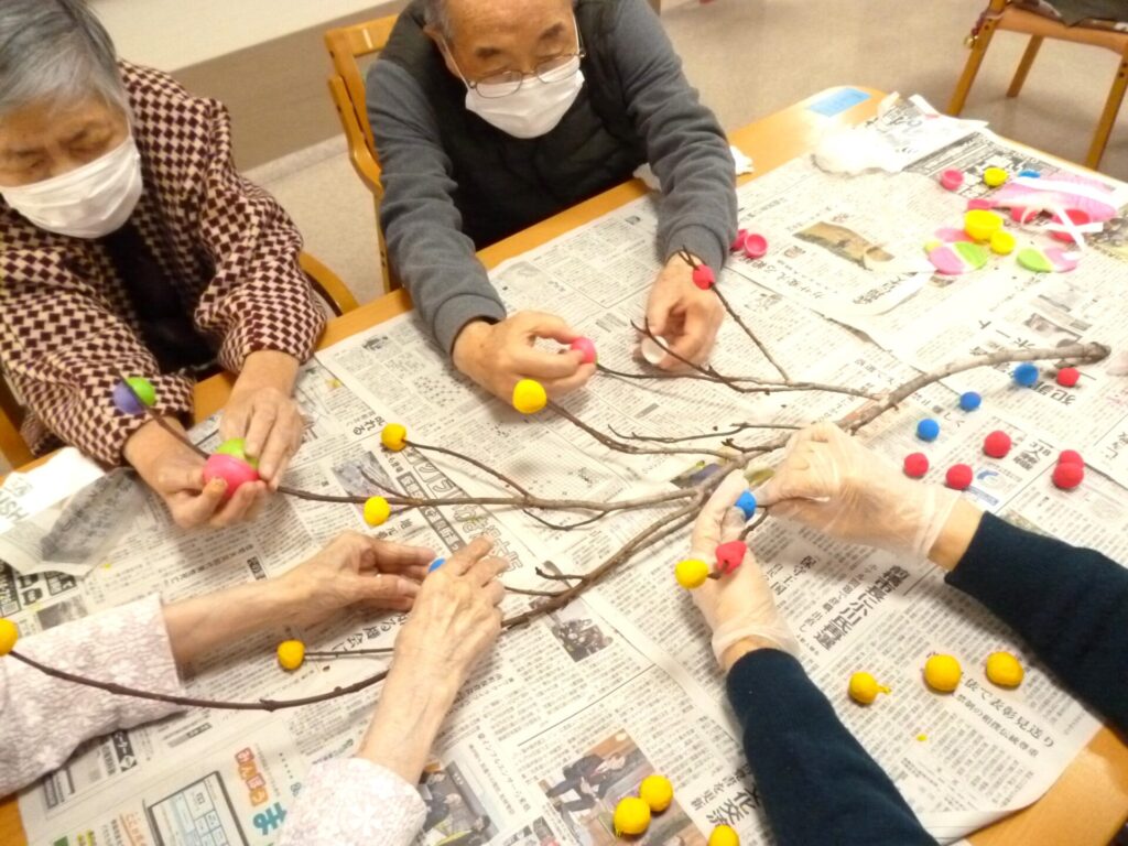 「さかえグリーンハート美術館通り」では、1月15日(木)に団子さしをおこないました。