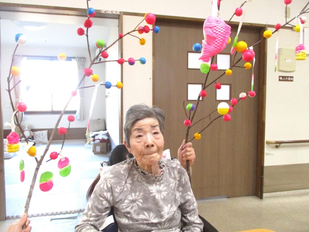 色とりどりの団子や飾りつけをされ、無病息災・五穀豊穣を祈りました。