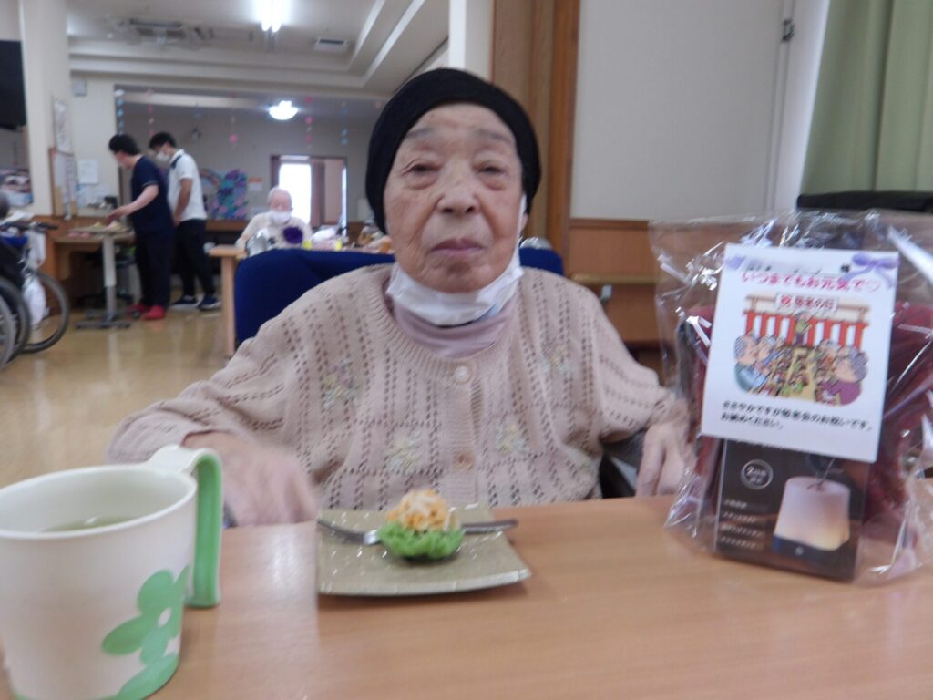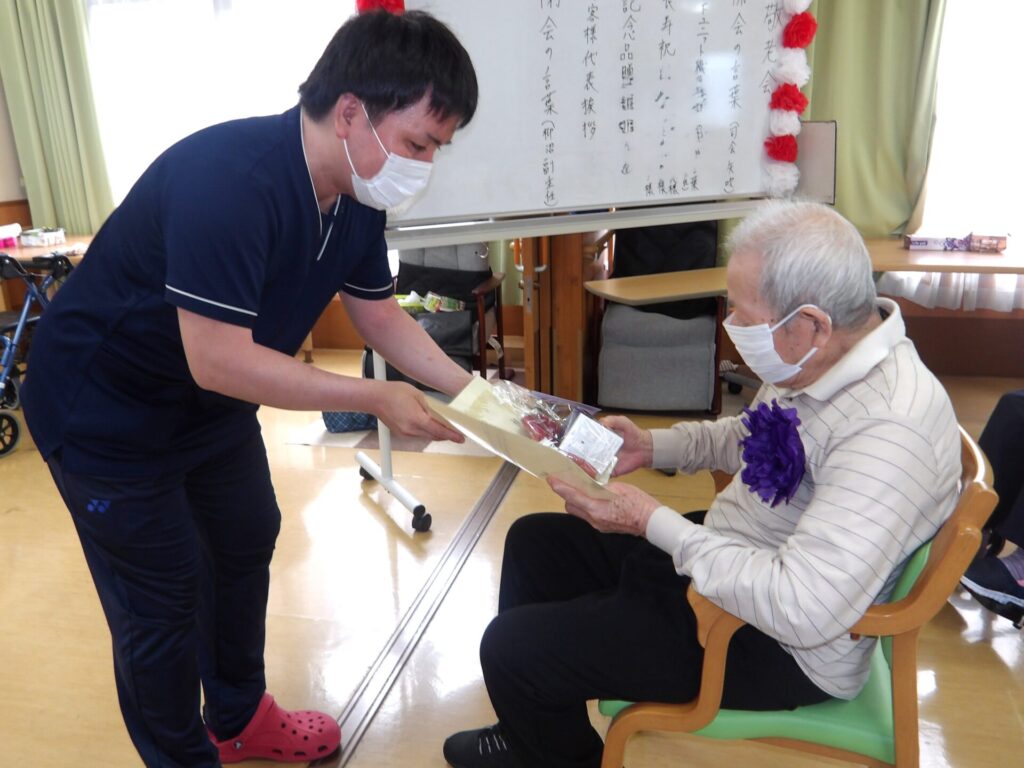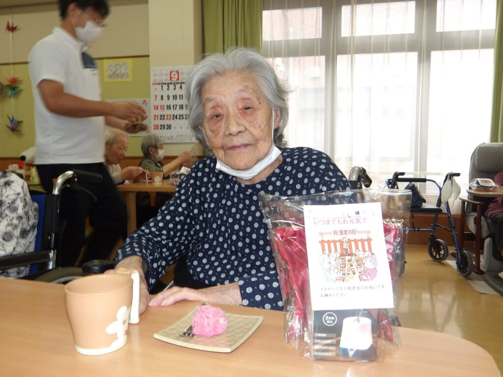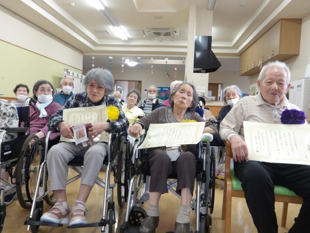 9月に敬老会を開催しました。敬老のお祝いで賞状や一人一人に記念品をお渡し、その後 皆で生菓子を食べました。これからもお元気でお過ごし下さい♡