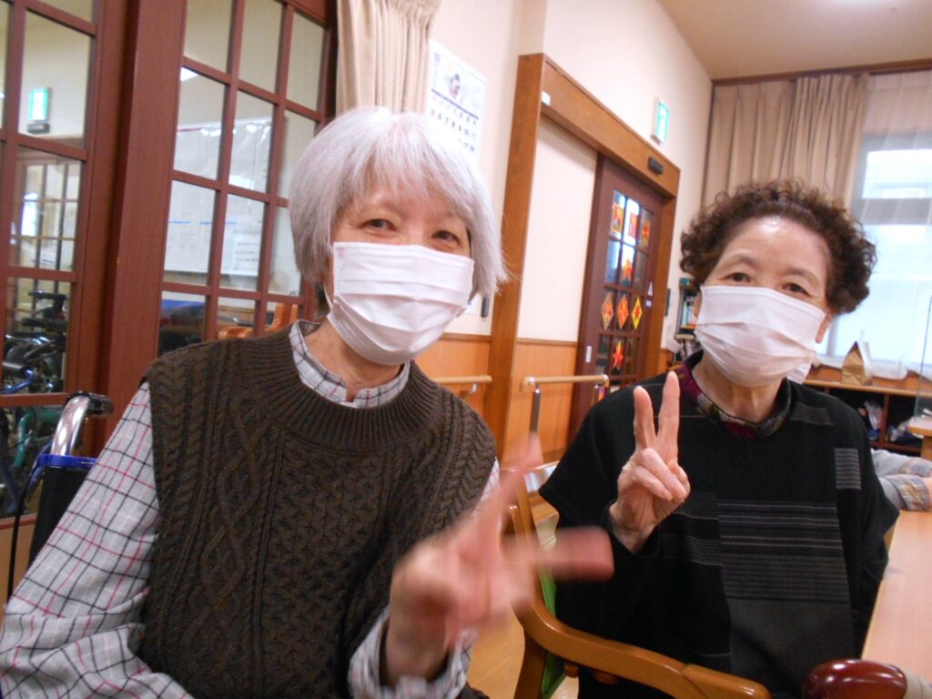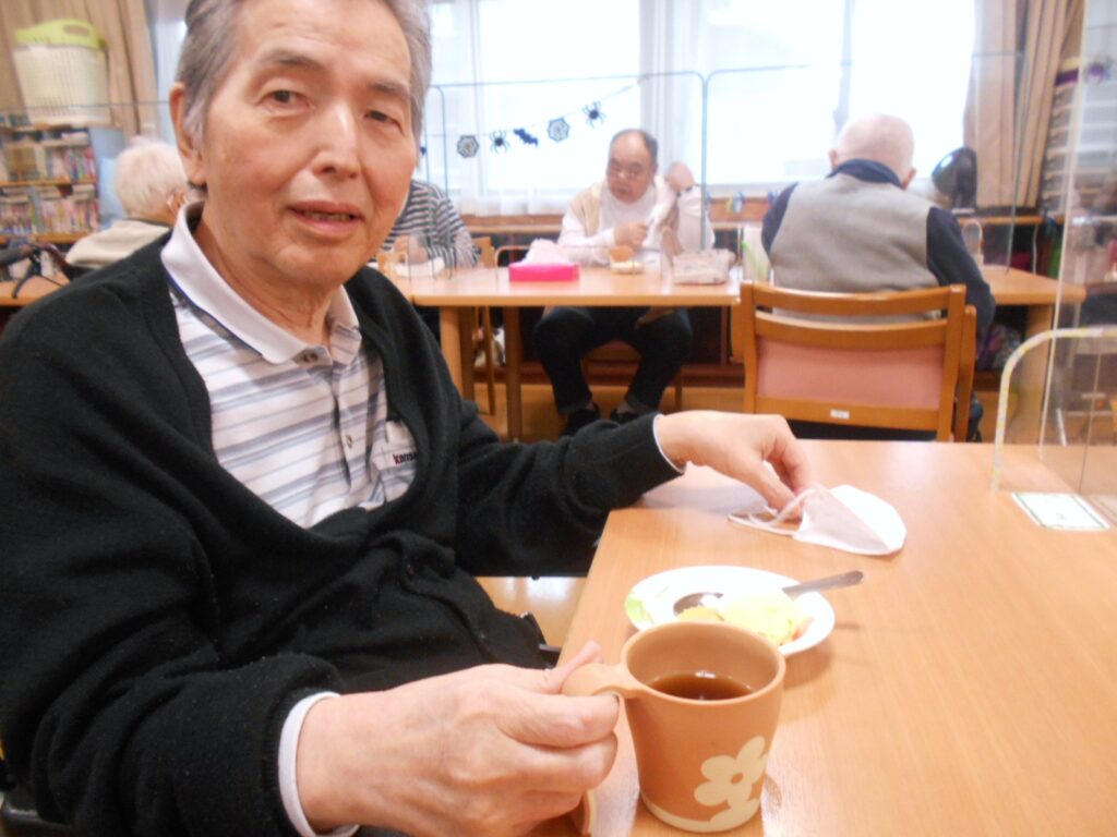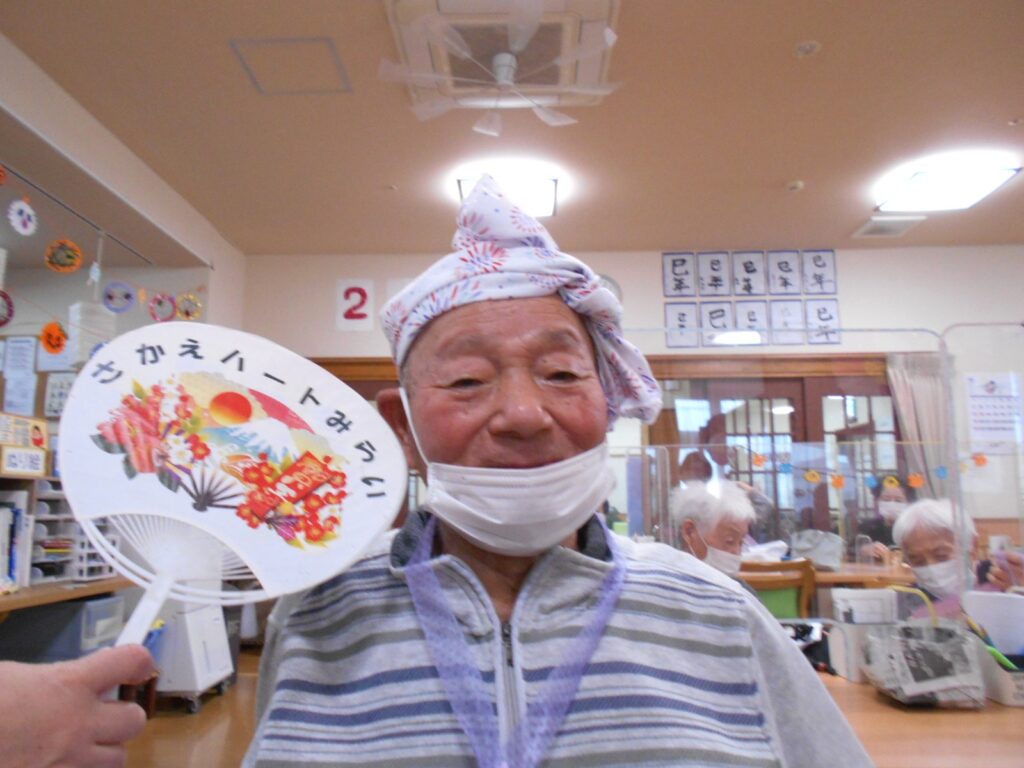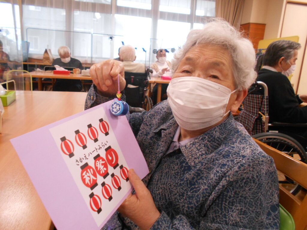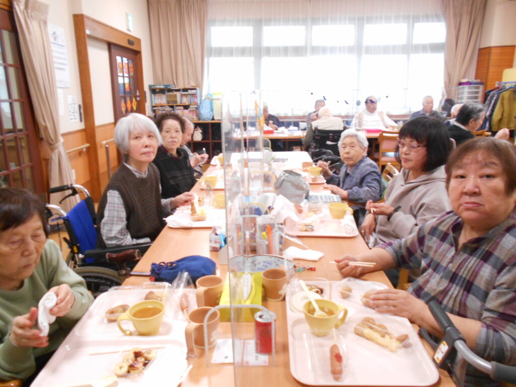 10月22日(水)に秋祭りを行いました。昼食は炊き込みご飯のお稲荷さんやたこ焼き・ポテト・フランクフルトに豚汁など盛りだくさんでしたが皆様美味しそうに召し上がっておられました。午後からは、点数の付いたカップをめがけお手玉を投げるカップインというゲームと宝釣りゲームを行いました。カップインでは100点に入ると歓声が上がり大盛り上がりでした。一日を通して皆様に喜んで頂き、うれしく思います。