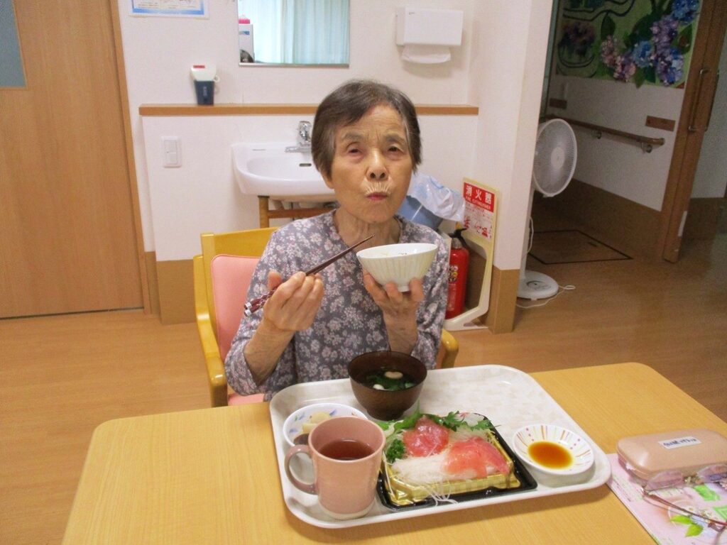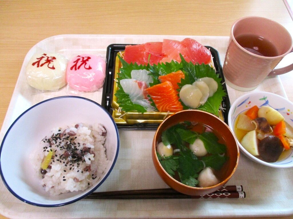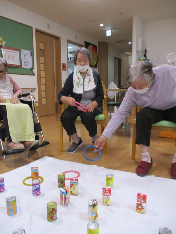 昼食にお祝いメニューを召上り、「お菓子つり・ジュースわなげ」をされ楽しいひと時を過ごして頂きました♪