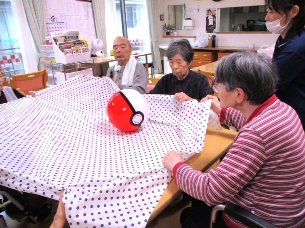 芋煮が出来上がるまでの時間は、新聞巻取り競争や力合わせて!などのゲームを楽しまれました。