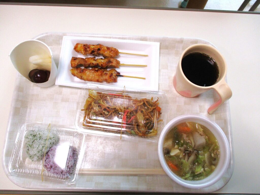 焼き鳥や焼きそばと一緒に大鍋で煮た芋煮汁を味わいました。