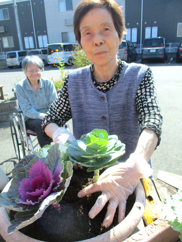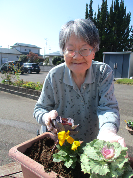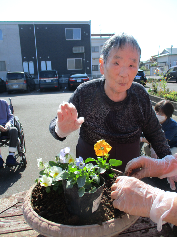 10月30日お花の寄せ植えを行いました。松葉ぼたんやパンジーなどのお花を植えました!