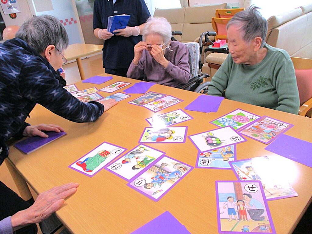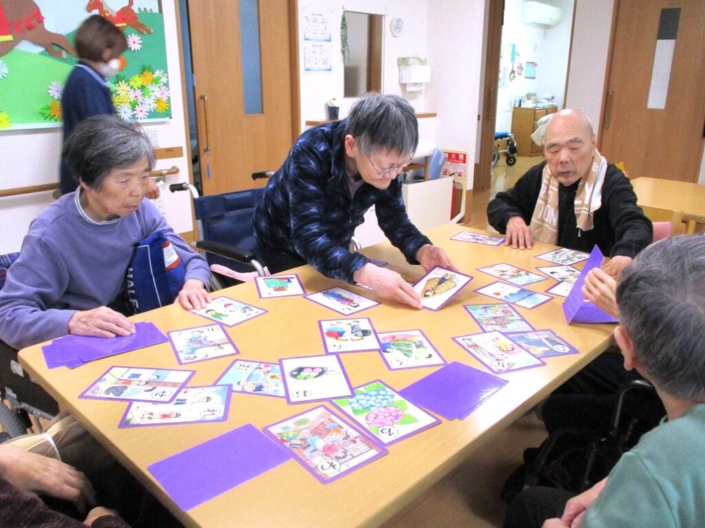 「かるたとり」を行いました!枚数が少なくなるにつれ、熱戦のかるた取りになりました。