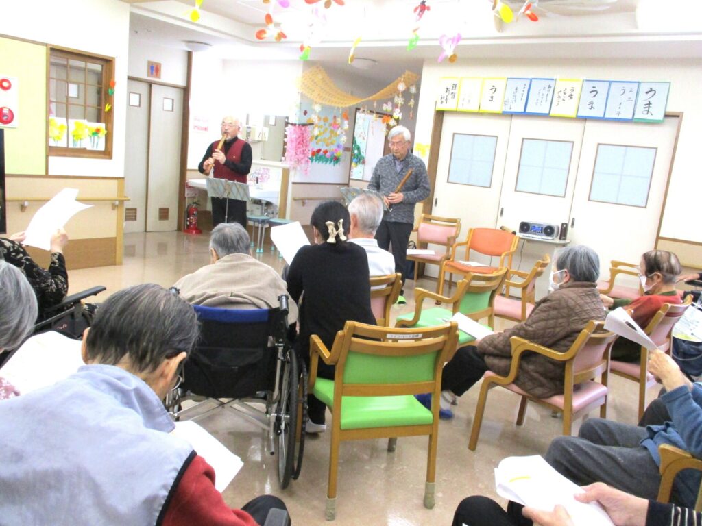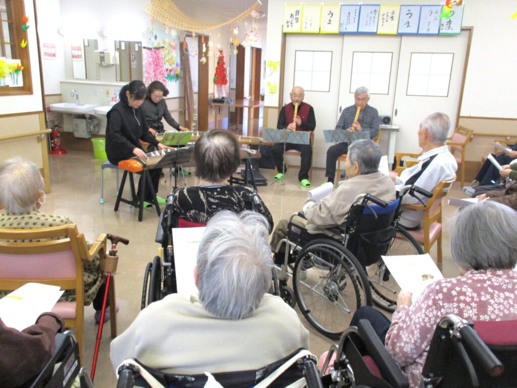 生のお琴と尺八の演奏を聴いたり、懐かしい歌を一緒に歌って楽しい時間を過ごしました。